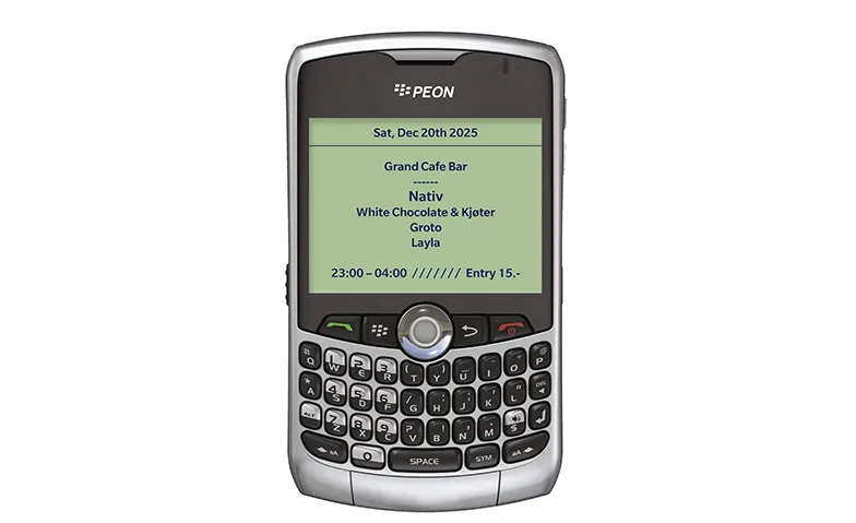 PEÓN - The Last Dance: 23.00 - 01.00 White Chocolate & Kjoter 01.00 - 01.30 Groto (Live Showcase) 01.30 - 02.00 Nativ (Live Showcase) 02.00 - 04.00 Layla