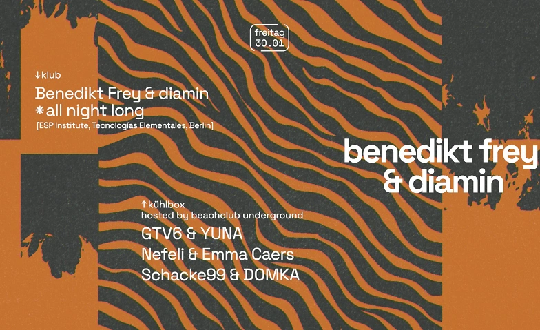 Here we go again. Benedikt Frey ist zurรผck und wieder bespielt er eine Nacht lang unseren Klub. Dieses Mal zusammen mit Diamin. Falls ihr mit den beiden nicht mithalten kรถnnt, gibt es oben die ganze Nacht lang Beachclub-Feeling โ€“ zurรผcklehnen kรถnnt ihr euch hier aber evtl. auch nicht.