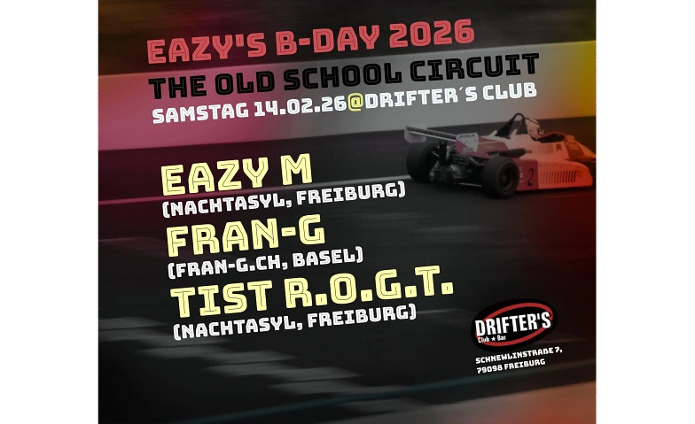 Eazy's B-Day 2026  The Old SCHOOL Circuit Drifter's Club, Schnewlinstraße 7-9, 79098 Freiburg im Breisgau Tickets
