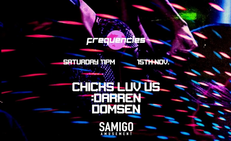 Frequencies takes over Samigo on Saturday, Nov 15th with CHICKS LUV US ⚡️🪩 the Marseille duo turned Ibiza favorites, from DC-10 to Ushuaïa landing in Zurich for the very first time.