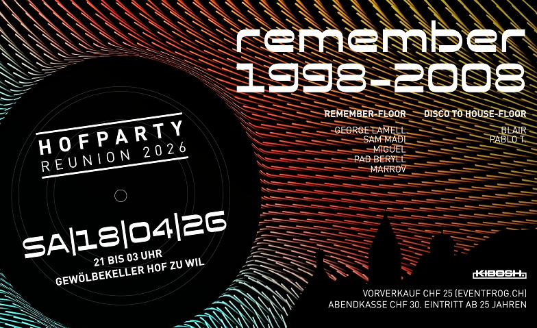 HOFPARTY Reunion 2026 Gewölbekeller Hof zu Wil, Marktgasse 88, 9500 Wil SG Tickets