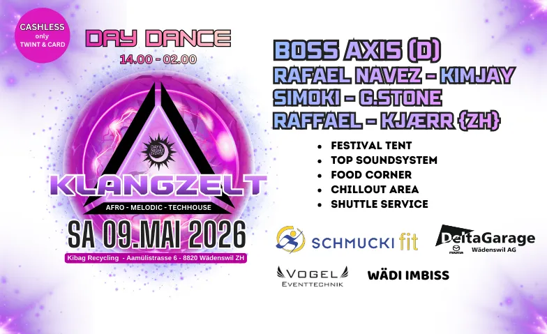 Am Samstag, 9. Mai 2026 findet das Klangzelt erneut auf dem Kibag Recycling Areal in Wädenswil statt.