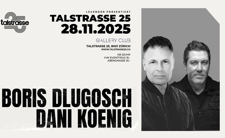 LEGENDAER PRÄSENTIERT BORIS DLUGOSCH & DANI KOENIG Talstrasse 25, 8001 Zürich, Talstrasse 25, 8001 Zürich Tickets