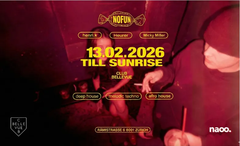 NoFun events is finally coming to Zurich, hosted exclusively at Club Bellevue.