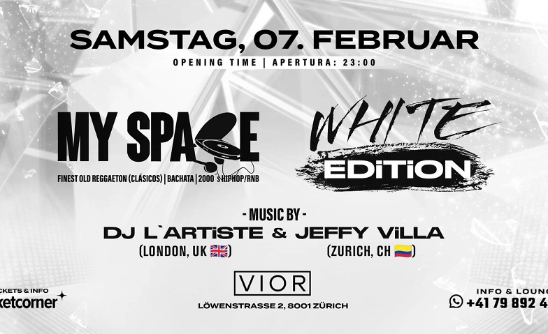 MY SPACE – White Edition bedeutet fühlen ohne nachzudenken, sich von der Musik tragen zu lassen und vom Weiß jeder Emotion leiten zu lassen. Ein Moment, in dem alles fließt, Blicke sich verbinden und die Zeit stillsteht. Atme die Nacht ein, gib dich dem Rhythmus hin und mach diesen Moment zu deinem Space