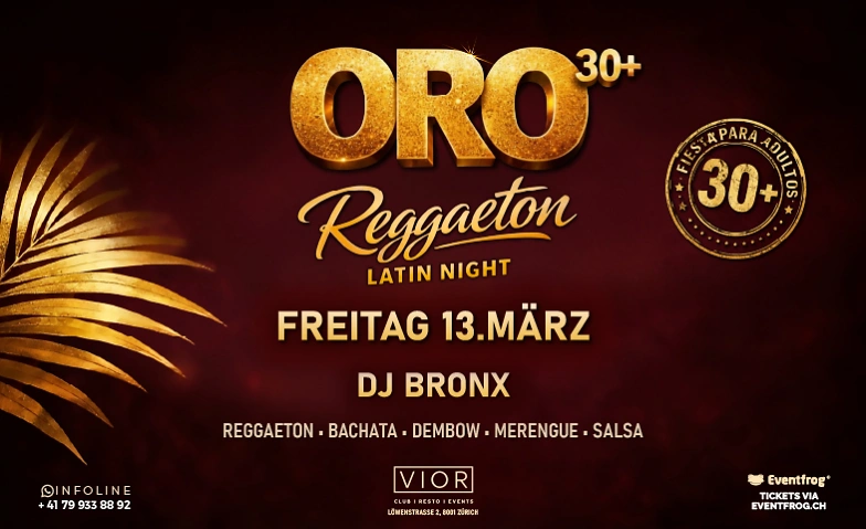 ORO  30+ Reggaeton Latin Night VIOR, Löwenstrasse 2, 8001 Zürich Tickets