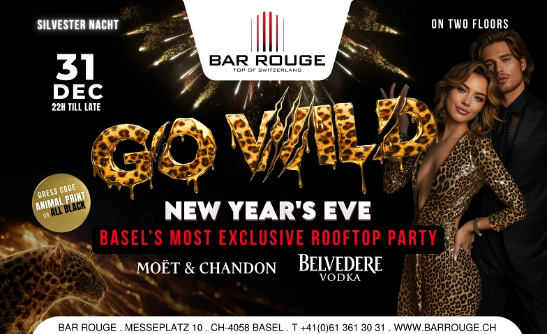 GO WILD   Bar Rouge Silvester Party in Basel Bar Rouge - Rooftop Bar & Club, Messeplatz 10, 4058 Basel Tickets