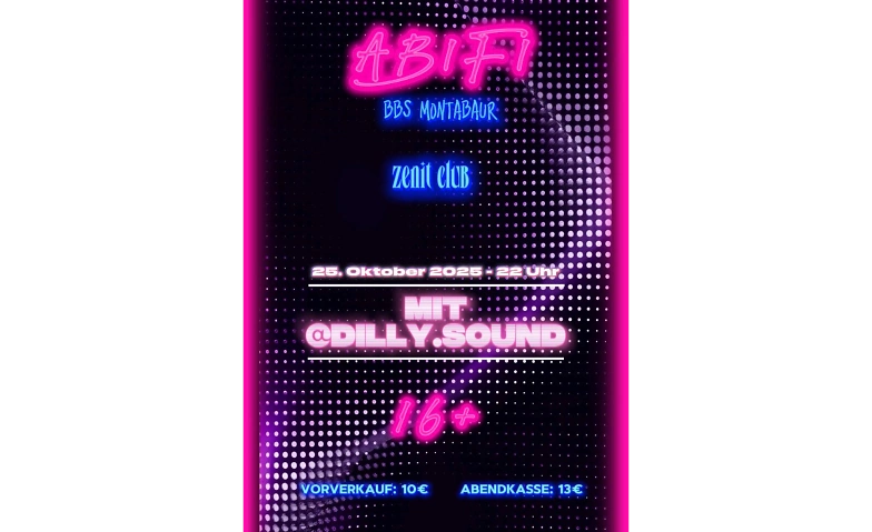 Kommt zur Abifi BBS Montbaur, feiert zusammen mit DJ Dilly und gönnt euch exklusive Specialdrinks!