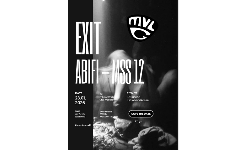 Wir veranstalten eine Abifi als 12te Stufe des MvLG's im Zenit, um unseren Abschlussball zu finanzieren und zudem auch einen guten Abend zu haben. Es wird einen Top-DJ geben und zudem eine sehr gute Atmosphäre.