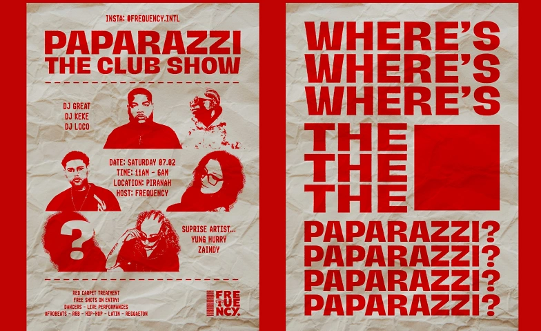 WHERE'S THE PAPARAZZI? is a Frequency event built as a club night with live moments woven into the flow.