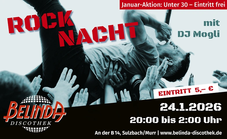 Rocknacht mit DJ Mogli – Unter 30? Eintritt frei! Belinda Discothek, Backnanger Straße 78, 71560 Sulzbach an der Murr Tickets