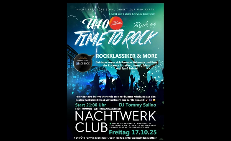 ► Location: Ü40-Party von Rock44 im Nachtwerk Club München, Landsberger Str. 185, 80687 München 📌