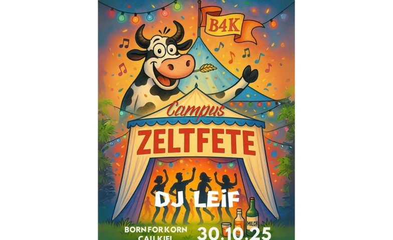 Die legendäre Fachschaftsparty der Agrarwissenschaften und Ökothrophologie CAU Kiel "Born 4 Korn" ist zurück auf dem Campus. Am 30. Oktober erwartet euch die große Zeltfete auf der Wiese am Bioturm.