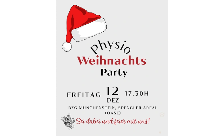 Die Physio-Studierenden feiern dieses Jahr eine unvergessliche Weihnachtsparty, liebevoll organisiert von der Klasse PHY 25. Euch erwartet ein Abend voller Spass und guter Stimmung: DJ Timeless sorgt für die passende Musik, festliche Weihnachtsdeko bringt die Location zum Strahlen und in der Fotobox könnt ihr gemeinsam lustige Erinnerungen festhalten.Für Hunger und Durst ist natürlich auch gesorgt – leckeres Catering und coole Drinks warten auf euch und bei Trinkspielen wie Beerpong kommt garantiert keine Langeweile auf.