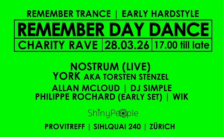 ShinyPeople Remember Day Dance w/ NOSTRUM & YORK Provitreff, Sihlquai 240, 8005 Zürich Tickets