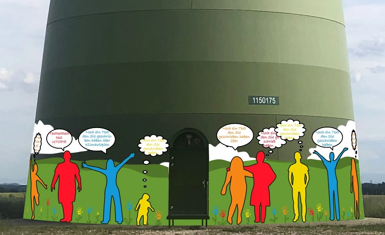 Der Entwurf steht bereits (siehe angefügtes Bild). Interessierte können ihre eigene Silhouette auf den unteren Teil des Windrads übertragen und das Design mit kurzen Textfragmenten über persönliche Zukunftsträume ergänzen. Diese Texte sollten eine Länge von maximal 65 Zeichen nicht überschreiten.
