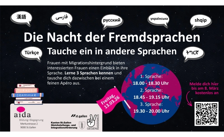 Die Nacht der Fremdsprachen Aida  Bildung + Begegnung, Merkurstrasse 2, 9000 St. Gallen Tickets