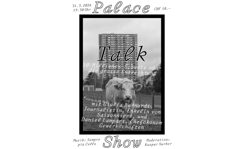 Am 14. Juni 2026 wird über die SVP-Initiative zu einer "10-Millionen-Schweiz" abgestimmt. Eine Annahme hätte die Aufkündigung der Personenfreizügigkeit mit der EU und eine Aushöhlung des Asylrechts zur Folge. An der dritten Talkshow der Erfreulichen Universität Palace soll die Initiative in die Schweizer Migrationsgeschichte eingeordnet und ihre Folgen für die Gegenwart diskutiert werden: Insbesondere droht die Wiedereinführung des Saisonnierstatutes, das Migrant:innen früher nur einen beschränkten Aufenthalt in der Schweiz erlaubte – mit starken Diskriminierungen, etwa beim Familienleben. Die beiden Gäste der Talkshow kennen sich biografisch wie politisch mit dem Thema aus. Giulia Bernardi ist Co-Chefredaktorin beim Luzerner Kulturmagazins 041. Sie ist die Enkelin von italienischen Saisonniers, die in den fünfziger Jahren in die Schweiz gekommen waren. Bernardi wird an diesem Abend über ihre Tätigkeit für den Verein Tesoro vorstellen, der sich für die Aufarbeitung des Leids von migrantischen Familien mit Saisonnier- und Jahresaufenthalterstatuts einsetzt. Daniel Lampart ist Chefökonom beim Schweizerischen Gewerkschaftsbund SGB. Die Gewerkschaften waren massgeblich daran beteiligt, dass das Saisonnierstatut Anfang des 21. Jahrhunderts abgeschafft und durch die Personenfreizügigkeit mit der EU ersetzt wurde. Lampart wird über die drohenden Folgen der Initiative für die Arbeiter*innen sprechen. Aber auch über die Probleme, welche die Initiative angeblich lösen will wie etwa die steigenden Mieten. Moderiert wird die Talkshow von Kaspar Surber, Journalist bei der Wochenzeitung WOZ. Ebenfalls mit dabei ist wieder das Palastorchester Oetiker. Statt wie bisher mit einem tritt es diesmal schon mit drei Celli auf, als Trio Sempre più Cello.