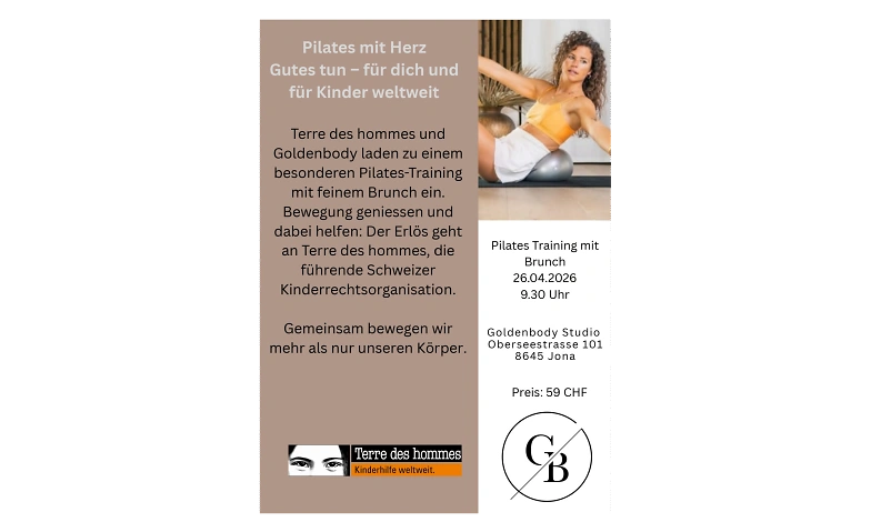 Terre des Hommes und Goldenbody laden zu einem besonderen Pilates- Training mit feinem Brunch ein.