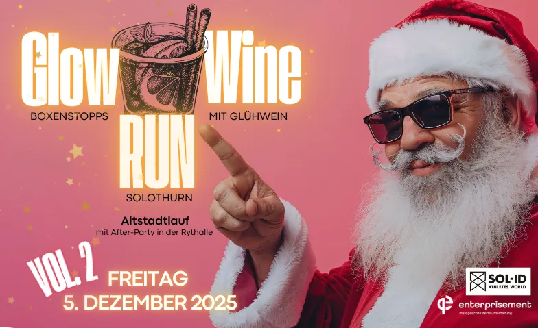 Der GlowWineRun bringt die Weihnachtsstimmung auf Hochtouren: Ein Run durch Solothurns bezaubernde Altstadt, gemeinsam lachen und Spass haben. Ob jung oder alt, laufend oder spazierend – bei diesem Weihnachtsabenteuer ist für alle Platz! Sei dabei und werde Teil der festlichsten Laufgemeinschaft von Solothurn. UND, wer weihnachtlich verkleidet erscheint hat noch die Chance den grossen Kostümpreis zu gewinnen :)