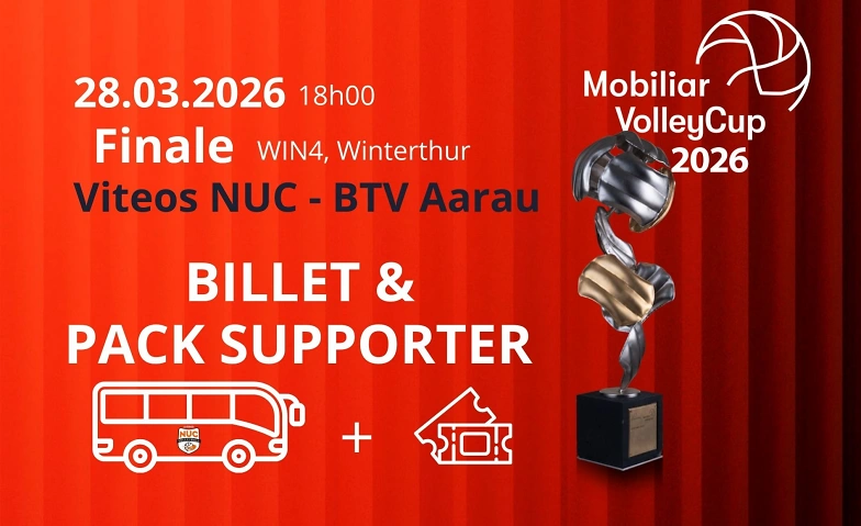 Le 28 mars prochain, à 18h00, aura lieu la Finale de la Mobilière Volley Cup 2026, à l'AXA Arena WIN4 de Winterthur. Le Viteos NUC affrontera l'équipe leader de LNB, le BTV Aarau!