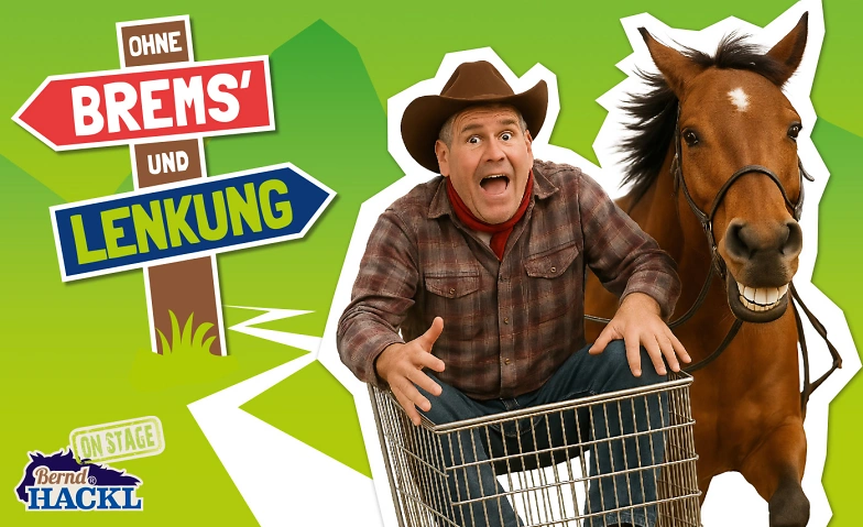 Mit seinem brandneuen Programm „Ohne Brems’ und Lenkung“ geht Pferdetrainer Bernd Hackl in die zweite Runde – nicht im Sattel, sondern auf der Bühne und diesmal wird’s noch wilder, noch schräger und garantiert bauchmuskelstrapazierend!