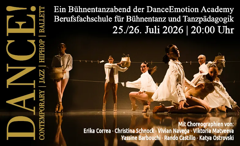 Die Berufsfachschule für Bühnentanz der DanceEmotion Academy lädt Sie ein zu einem unvergesslichen Tanzabend voller Ausdruck, Vielfalt und Kreativität!