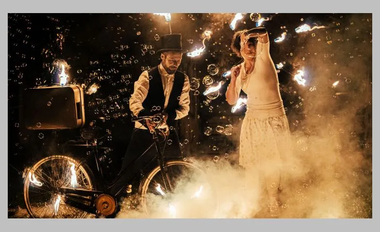 Wenn zum Höhepunkt ein Meer aus Seifenblasen mit den goldenen Feuerfunken verschmelzen, ist die Glückseeligkeit im Hier-und-Jetzt mitten unter uns.