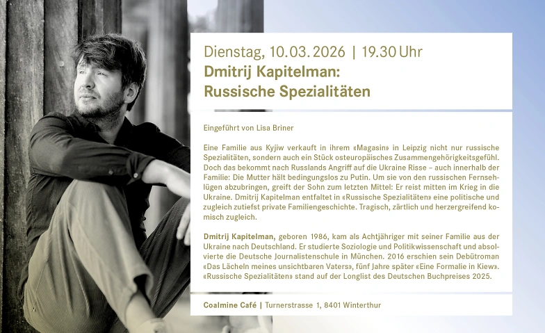 Dmitrij Kapitelman, geboren 1986, kam als Achtjähriger mit seiner Familie aus der Ukraine nach Deutschland. Er studierte Soziologie und Politikwissenschaft und absolvierte die Deutsche Journalistenschule in München. 2016 erschien sein Debütroman «Das Lächeln meines unsichtbaren Vaters», fünf Jahre später «Eine Formalie in Kiew». «Russische Spezialitäten» stand auf der Longlist des Deutschen Buchpreises 2025.