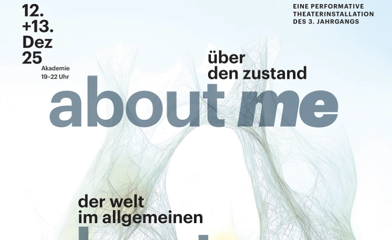 Die Studierenden des 3. Jahrgangs Schauspiel und Regie erforschen in dem jährlich stattfindenden „about me“-Projekt sich selbst auf radikal persönliche Weise. Sie tauchen tief in ihre Erfahrungen, Sehnsüchte und Ängste ein und konfrontieren sich und uns mit ihrem ganz subjektiven Zugang zu ihrem Ich und der Welt. In einer theatralen Installation machen sie die gesamte Athanor Akademie zur Bühne und bespielen mit 12 individuellen Performances große und kleine, bekannte und versteckte Räume, Gänge und Winkel – und schöpfen dabei aus den unendlichen Möglichkeiten theatraler Mittel.