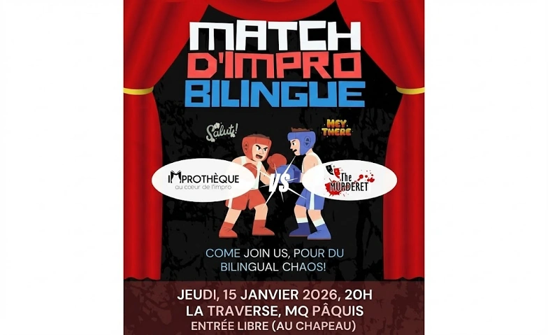 Get ready, Genève ! Pour la toute première fois, deux équpes d'improvisation montent sur le ring pour un duel hors du commun. The Murderet rencontre Improthèque dans un format mixant l'anglais 🫖 et le français 🥖 !