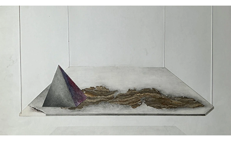 Zum Formenrepertoire von Eva Werdenich zählen auch zylindrische Figuren sowie oben gerundete Platten, die an Grabsteine erinnern, deren Inschriften so verwittert sind, dass man sie nicht mehr entziffern kann. Sehr häufig finden sich auch Pyramiden, deren unterschiedliche Größen und Erscheinungsmodalitäten die Künstlerin in zahlreichen Zeichnungen vorstrukturiert hat. Fast zwangsläufig denkt man dabei an den Monolithen aus Stanley Kubricks Film „2001 - Odyssee im Weltraum“, der in die prähistorische Welt der Eröffnungssequenzen teleportiert wird und Botschaften aus einer fremden Welt durch Zeit und Raum zu bewegen scheint. So ähnlich lässt sich auch das gesamte ästhetische Programm von Eva Werdenich-Maranda beschreiben: Inspiriert von ihrem Interesse für Archäologie und für die Entstehungsgeschichte von Sprache und Schrift spürt sie archaischen Zeichen in zeitgenössischen Szenarien nach. Sie will mit ihrer Kunst hinter den äußeren Schein der Welt blicken, um verborgene Geheimnisse aufzudecken und einen Zugang zur Wahrheit zu ermöglichen.
