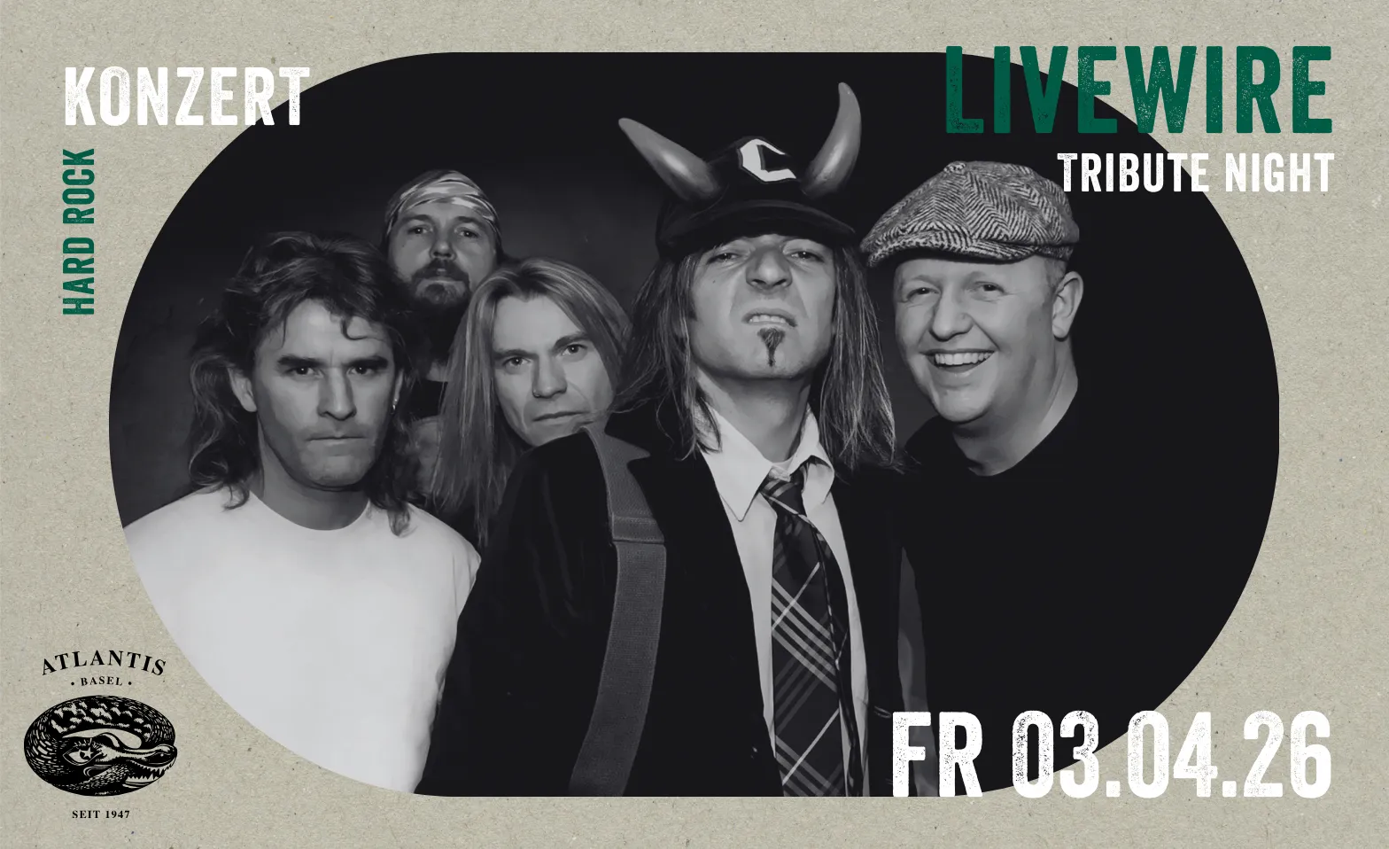 Seit 2002 wandelt die AC/DC Tribute-Band live/wire auf den Spuren der australischen Höllenrocker. Die in der Region Basel beheimatete Truppe besticht sowohl musikalisch als auch optisch und macht sie zur erfolgreichsten AC/DC Tribute Band der Schweiz . Auch Showelemente des Originals kommen an ihren Konzerten zum Einsatz - etwa die Hell's Bell , Rosie oder die Dudelsackbläser des live/wire Pipe Corps. In ihrer rund zweistündigen Show spielt die Band, die mittlerweile über 60 Titel im Repertoire hat, nicht nur allseits bekannte Hits, sondern auch Raritäten für eingefleischte AC/DC Fans und Songs, die beim Original selten oder gar nie live zu hören sind.