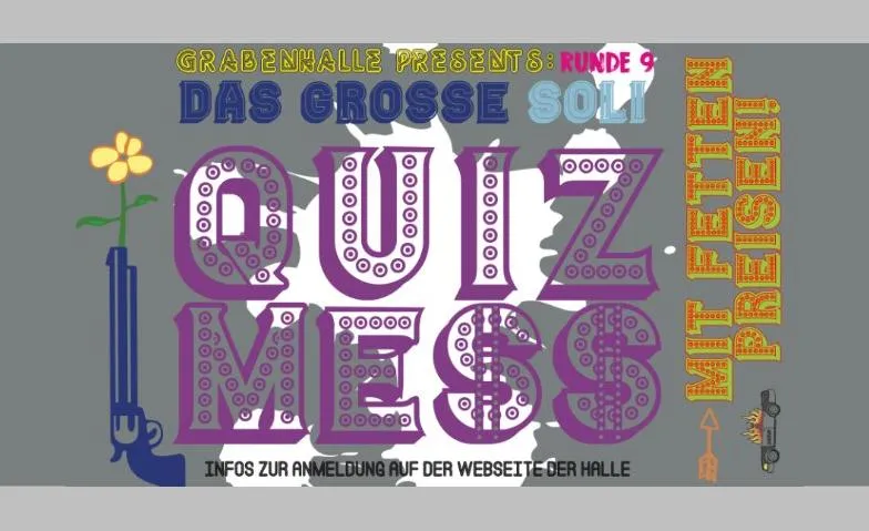 Ihr habt wieder lang genug gewartet: Die nächste Ausgabe des Soliquiz steht vor der Tür. Euer (einziger) Grund, euch auf Weihnachten zu freuen. Wir rasseln wie immer wild durch verschiedene Themenbereiche. Mitgespielt wird in Teams vor Ort mit einem Quiz-Bogen, auf der Bühne führt eine launige und (semi-)trinkfeste Moderation durch den Abend, dazwischen gibt's Pausen und Auflockerungen. Du kannst alleine spielen oder in Teams mit maximal fünf Personen zusammen. Ohne Handy und Cheats. Es gibt eine kleine Anmeldegebühr deren Höhe ihr selber bestimmt. Der Stutz geht SOLI an eine Kampagne (wird am Abend verkündet wohin). Oh, und claro: Es winken auch in diesem Jahr fette fette Preise. Wer schon mal dabei war: you know, you know! Melde dein Team jetzt über unsere Mailadresse soli-quizz@grabenhalle.ch an (inkl. Team-Name) und reserviere dir einen der begehrten Tische (mit Team-Name). A presto! [gallery columns="4" ids="eyJ1cmwiOiJodHRwczpcL1wvd3d3LmdyYWJlbmhhbGxlLmNoXC93cC1jb250ZW50XC91cGxvYWRzXC8yMDI1XC8xMVwvMjAyNV8xMl8yM19Tb2xpUXVpek1lc3MyLmpwZyIsInRpdGxlIjoiMjAyNV8xMl8yM19Tb2xpUXVpek1lc3MyIiwiY2FwdGlvbiI6IiIsImFsdCI6IiIsImRlc2NyaXB0aW9uIjoiIn0="]