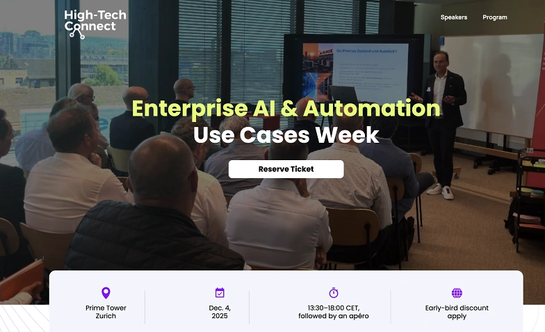 - Keynotes from global AI/Automation leaders and Swiss enterprise tech strategists