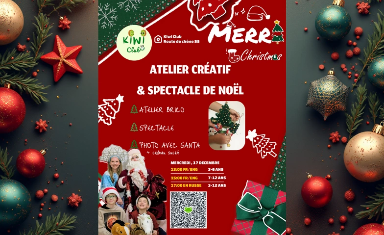 Atelier et spectacle de Noël (FR/EN) 15:00-16:30 3-12 ans | mercredi, 17.12.2025, 15:00 heure | KIWI Club, 1208 Genève, CH | Billets | |
