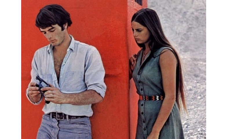 Der Student Mark wird verdächtigt, bei Studentenprotesten in Los Angeles einen Polizisten getötet zu haben, und flieht in einem gestohlenen Kleinflugzeug. Seine Flucht führt ihn durch den Südwesten der USA. In der bizarren Wüstenlandschaft des Death Valley trifft er auf Daria. Die beiden irren durch die Einöde, rauchen einen Joint, philosophieren und lieben sich. Michelangelo Antonionis einziger in den USA realisierter Film ist ein psychedelischer Trip, der bei seinem Erscheinen weder von der Kritik noch vom Publikum goutiert und für die Produktionsfirma MGM zum Desaster wurde. Heute geniesst Antonionis Hommage an die amerikanische Studentenbewegung nicht nur wegen der Orgie im Death Valley und des spektakulären Endes Kultstatus. ""Zabriskie Point" hat nichts von seiner schrecklichen, destruktiven Schönheit oder ungestümen Erotik eingebüsst. Antonionis apokalyptische Vision sagt genauso viel über die heutige Wut und Angst aus wie über Amerikas Generation von radikalen Studenten und Aussteigern zur Zeit des Vietnamkriegs", schrieb das MoMA 2017. Als die Galerie Hauser & Wirth noch in der Lokremise beheimatet war, haben wir Antonionis Film in einer Open-Air-Vorstellung gezeigt und wurden zu unserer Überraschung von 250 Zuschauer:innen überrannt. Im prallvollen Rondell entfaltete der Film seine ganze explosive Wucht.
