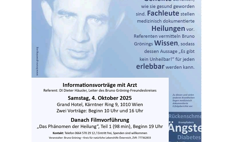 Bruno Gröning – Livestream eines Informationsvortrags aus Wien am 4. Oktober 2025Catégorie: Santé & Spiritualité / Spiritualité