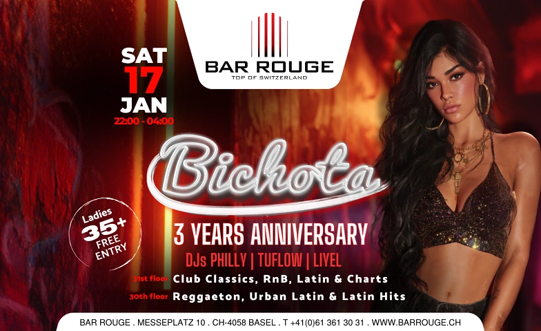 Bichota - 3 Years Anniversary Bar Rouge - Rooftop Bar & Club, Messeplatz 10, 4058 Basel Billets