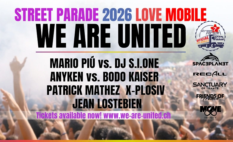 2026 sind wir an der Street Parade in Zürich mit einem eigenen offiziellen Love Mobile dabei.