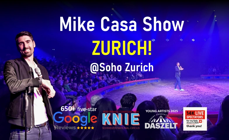 With +200m views and +10m likes in TikTok & IG, Mike Casa is not viral but at least bacterial. With already 10k+ spectators in 2025, Mike will bring his English stand-up comedy show to Soho Zurich. He will present classic jokes and new jokes to you. With other comedians as opening acts, he will offer you 2 hours of pure entertainment. CHECK HIM OUT: @mikecasacomedy
