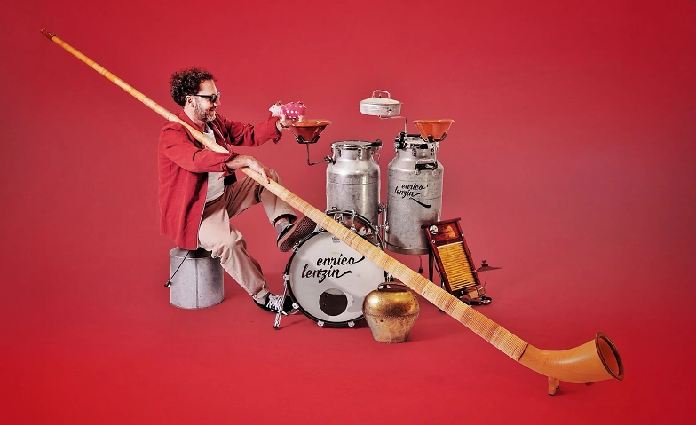Auf dieser musikalischen Reise wird das heimatliche Alphorn zum weltmusikalischen Sound-Vulkan und trifft sich mit Perkussionsinstrumenten aus unzähligen Kulturen. Der Grüncontainer, die Grosse Klappe, und das Nähkästchen, die Kleine Klappe, bilden Rhythmusteppiche, auf denen Enrico Lenzin Talerschwingen, Steeldrum und Teller Jonglage in unerhörter Weise vereint.